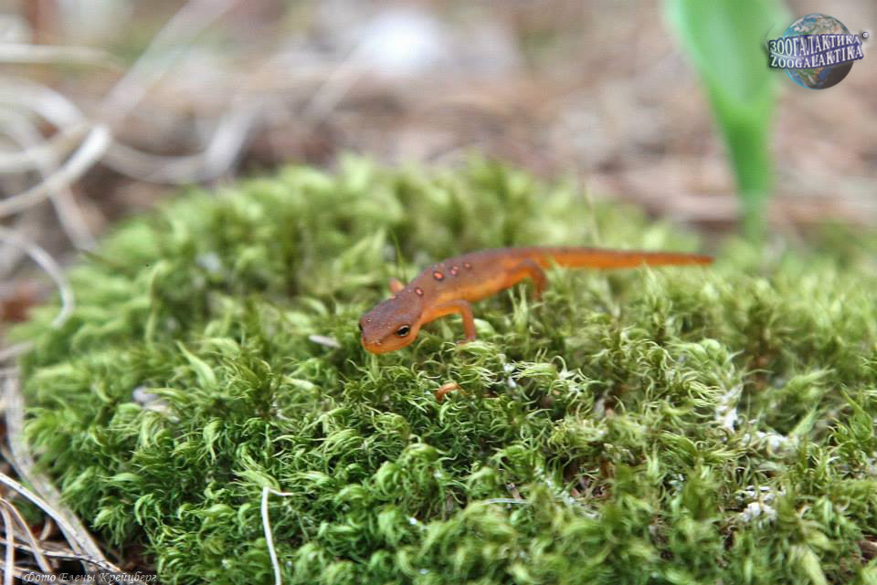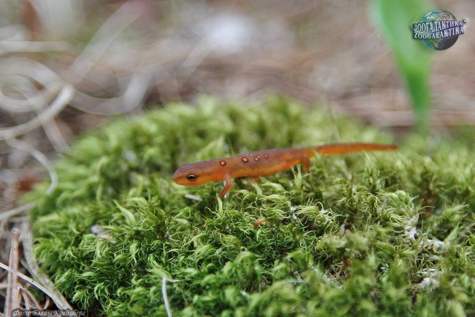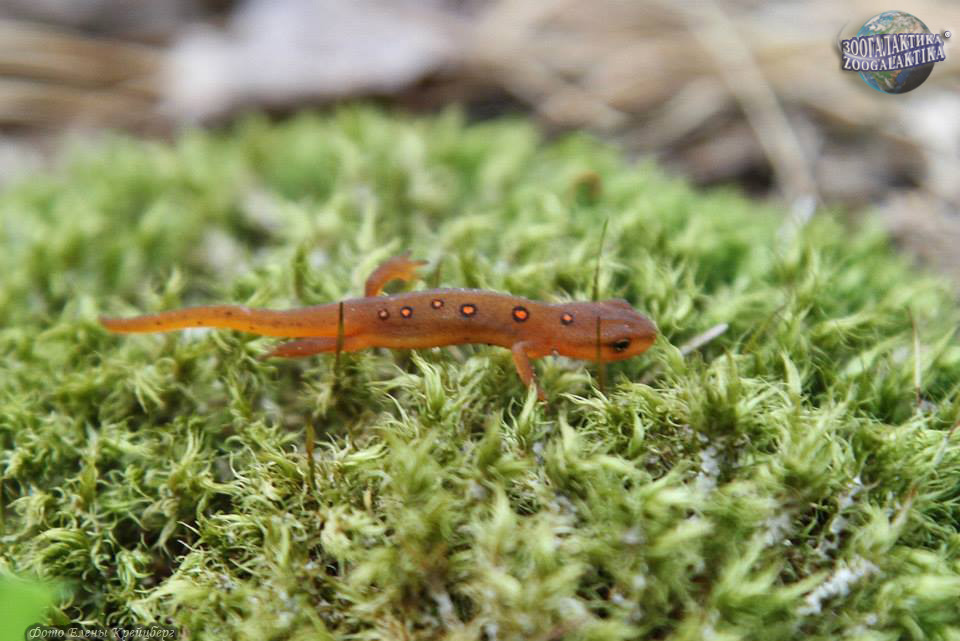 Зеленоватый, или восточноамериканский краснопятнистый тритон Notophthalmus viridescens