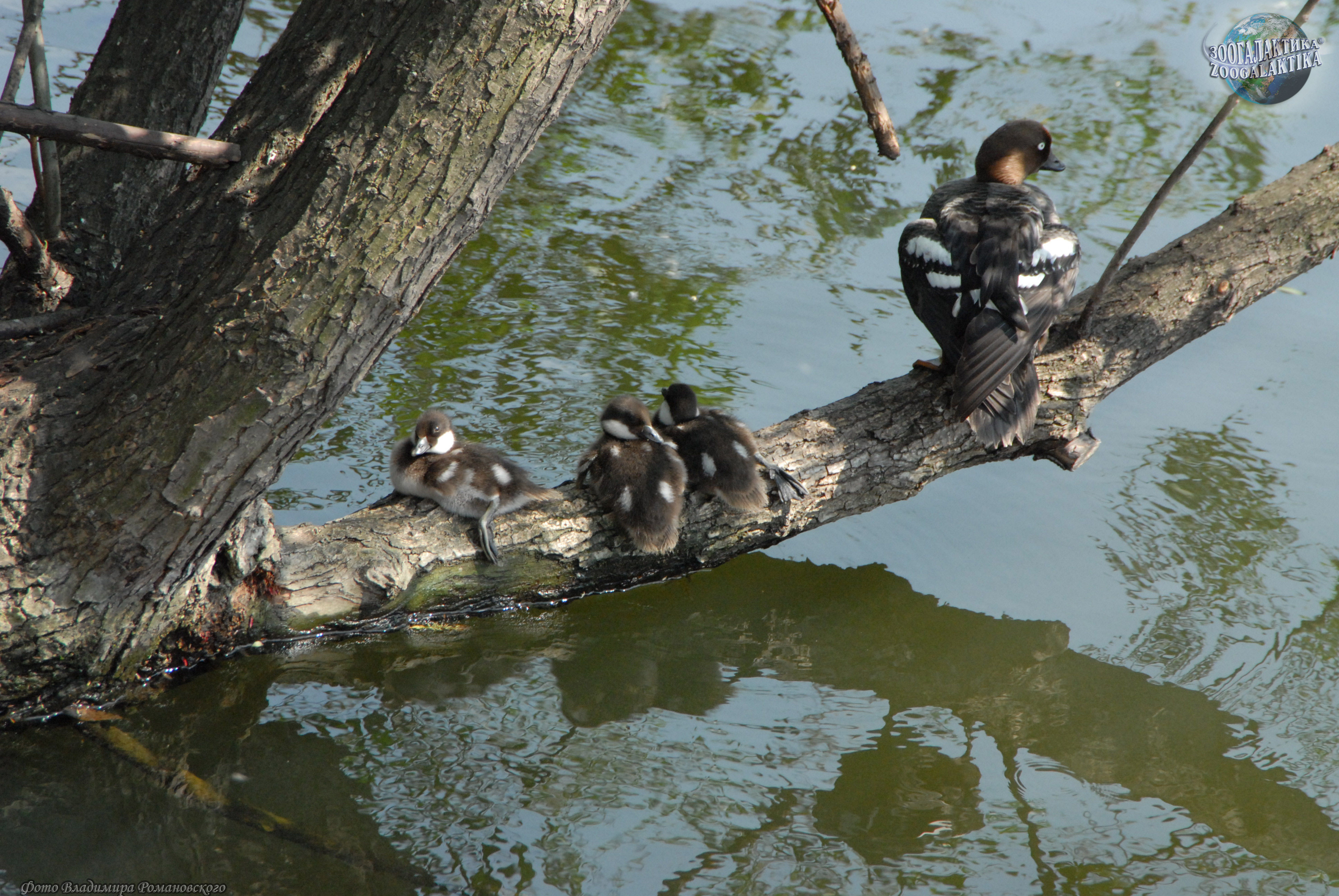 Число яиц в кладке гоголя варьирует от 4 до 14, но иногда можно найти и до 20 штук в одном дупле – это случается, когда туда откладывают яйца сразу две самки. Яйца у гоголя крупные, зеленоватого цвета, самка насиживает их в течение 30 дней. Вылупление птенцов происходит достаточно быстро, в течение 2-3 часов. Едва появившись на свет и обсохнув в течение нескольких часов, крошечные гоголята смело выпрыгивают из дупла на зов матери. Они такие маленькие и легкие, что благополучно приземляются на землю или в воду даже с большой высоты. Мать тут же ведет их к водоему, где они будут держаться по крайней мере несколько дней. Совсем маленькие птенцы еще не умеют нырять и собирают насекомых с поверхности воды. Но уже через несколько дней они прекрасно ныряют и могут оставаться под водой 1,5-2 минуты. Растут гоголята медленно, только в месячном возрасте их пуховой наряд заменяется на перья, а к полету они становятся способны на 48 день.
