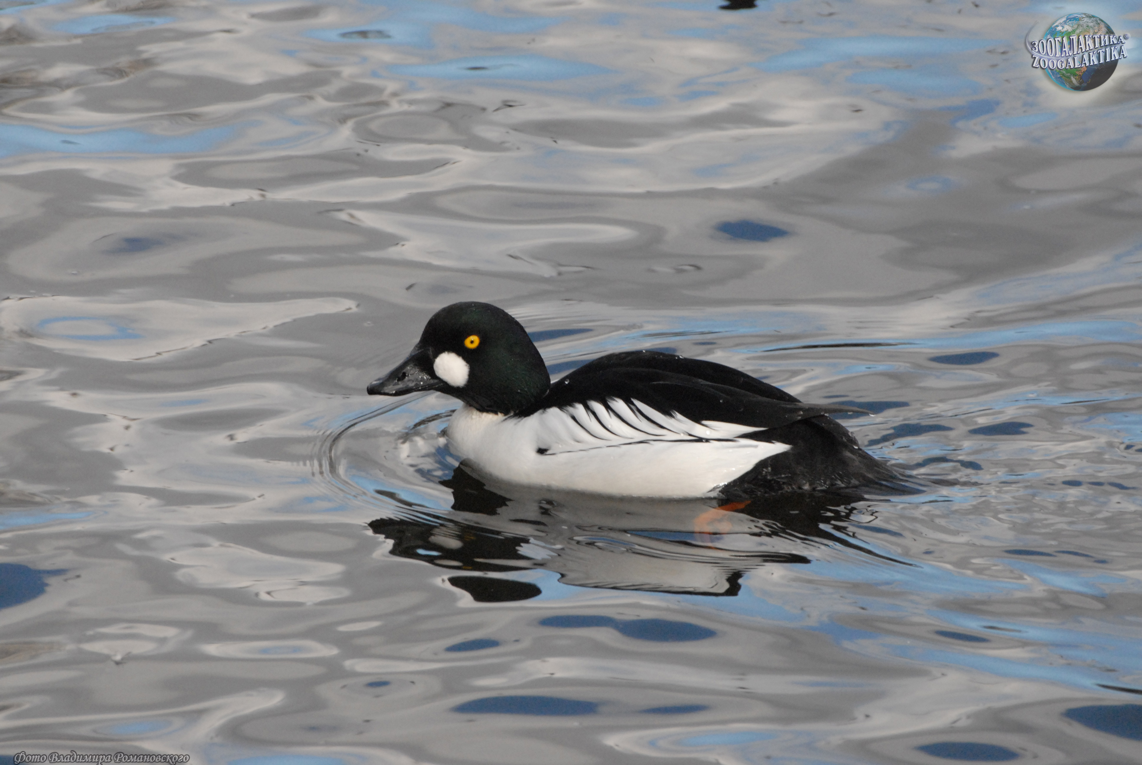 Ареал гоголя обыкновенного (Bucephala clangula) занимает большую часть лесной зоны Северной Америки, Европы и Азии. Внешность у этой утки довольно специфическая: у нее компактное округлое туловище, большая голова и короткая тонкая шея. Благодаря контрастной окраске оперения, гоголя ни с кем не спутаешь: у самца ярко-белые грудь и бока, белое зеркальце на крыле, голова же черная с хорошо заметными даже издалека большим белым пятнам около клюва. Самка окрашена в серый цвет, брюхо у нее белое, а коричневая голова отделяется от туловища белым ошейником. Летает гоголь очень быстро, и в полете проявляется еще одна его характерная черта: крылья этой небольшой утки издают высокий звенящий свист.
