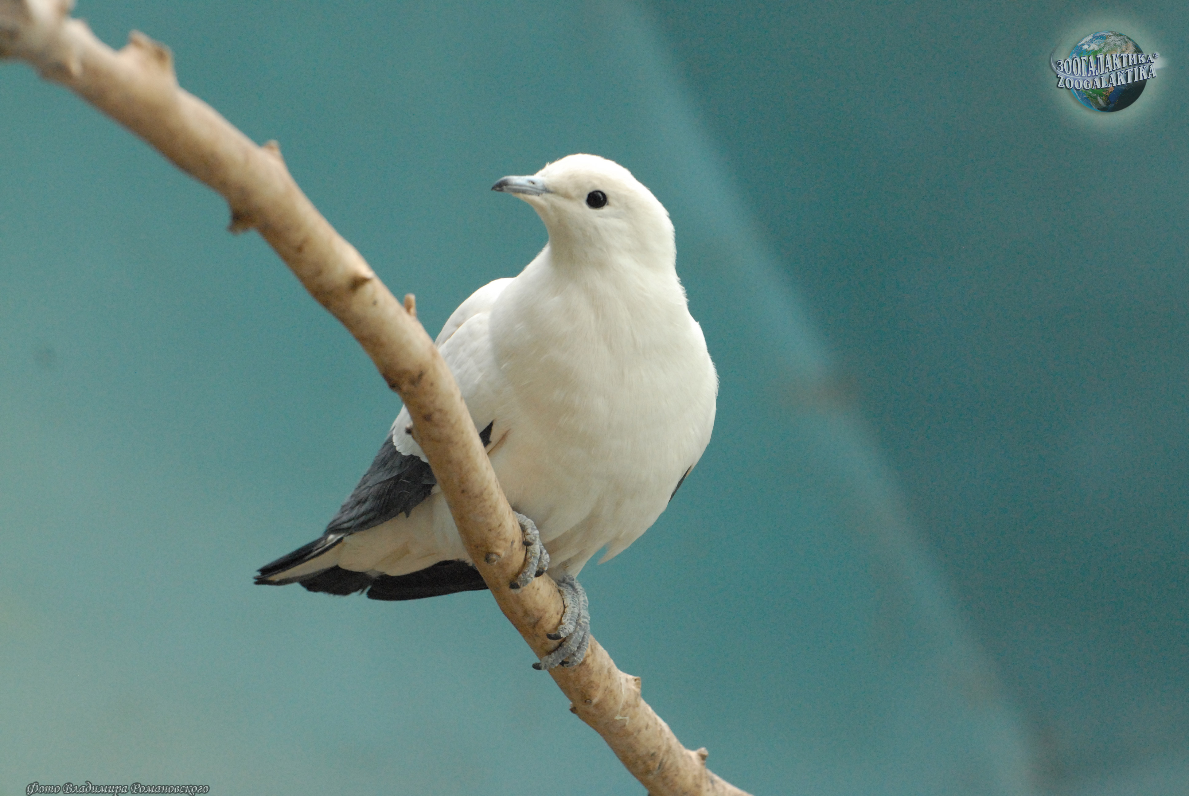 Двуцветный фруктовый голубь (Ducula bicolor) обитает в тропических лесах, мангровых и кустарниковых зарослях и на плантациях кокосовых пальм на маленьких островах в Индийском океане от острова Никобар до Новой Гвинеи и в северной части Австралии. Это довольно крупный голубь, длиной 37-44 см с размахом крыльев до 45 см. В его окраске действительно присутствует только два цвета — белый и черный.