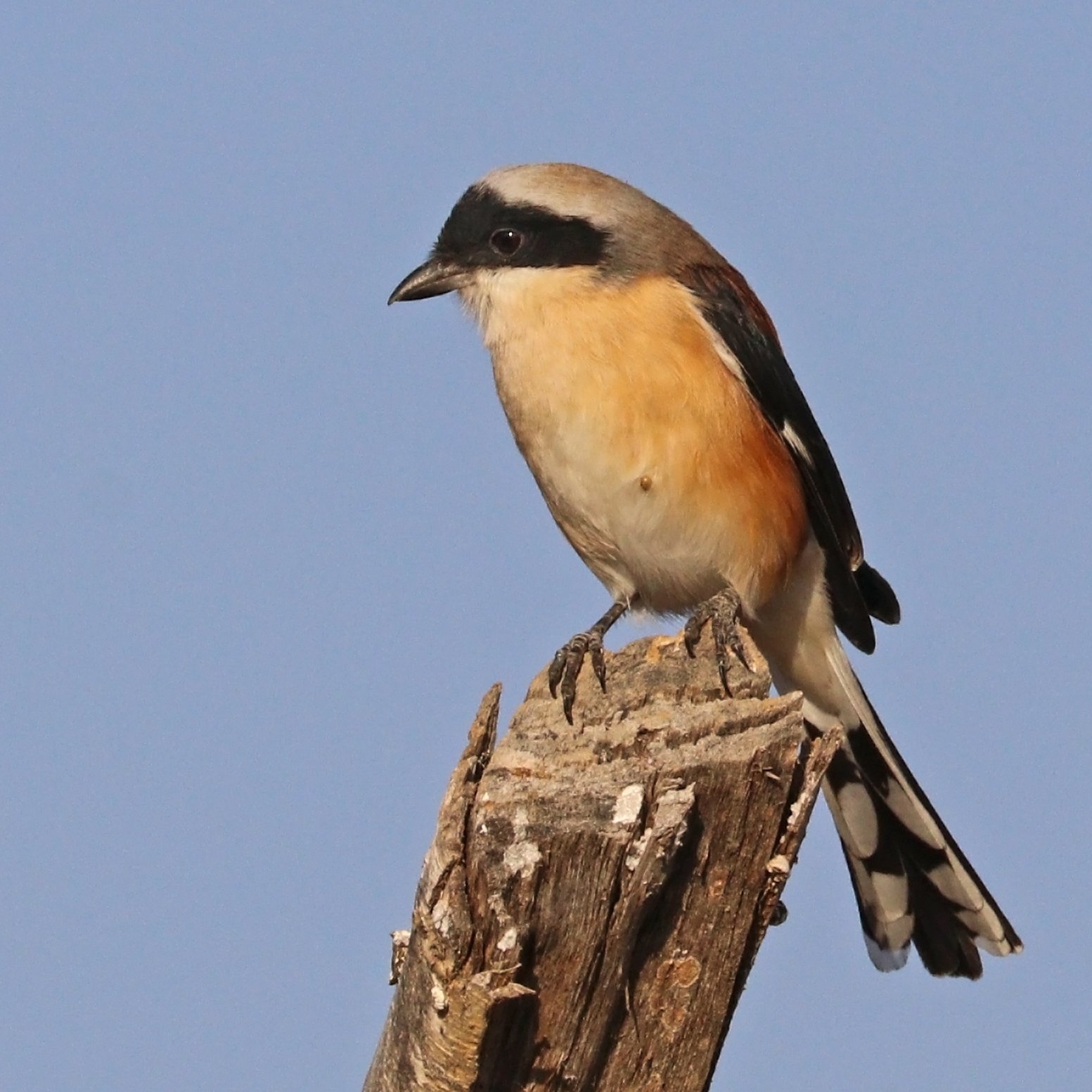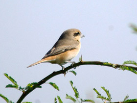 Семейство Сорокопутовые (Laniidae) - небольших размеров птицы с характерным «хищным» клювом — сжатым с боков, с острым крючком на вершине и большим зубцом перед вершиной. Крылья у них относительно короткие, хвост длинный. Для сорокопутов очень характерна манера при спуске с вершины дерева или куста слетать круто вниз, лететь над самой землей, а затем опять взмывать кверху.