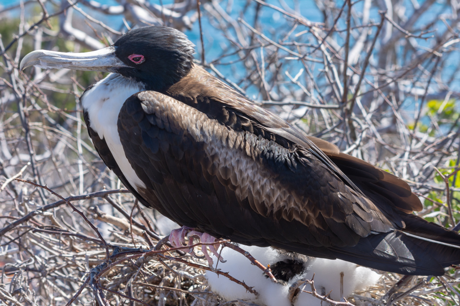 Отряд Пеликанообразные, или веслоногие (Pelecaniformes) можно встретить на морских побережьях и внутренних водоемах всех континентов, кроме Антарктиды, однако наиболее многочисленны они в субтропиках. Все они – птицы общественные и остаются таковыми на протяжении всей жизни: отдыхают и летают всегда стаями, гнездятся колониями, и даже птенцы их воспитываются в «яслях». Гнезда веслоногих могут располагаться на деревьях, скалах или просто на земле. Птицы строят их из растительных материалов и цементируют собственным пометом. Их кладка обычно состоит всего из 2-3 яиц, многие же виды выращивают единственного птенца. Яйца насиживают оба родителя, согревая их плавательными перепонками лап. Птенцы вылупляются слепыми, голыми и полностью зависимыми от взрослых птиц, которые выкармливают их в течение длительного периода времени. Пока птенцы совсем маленькие и не могут справиться с твердой пищей, родители приносят им в гнездо полупереваренную рыбу и отрыгивают ее в открытые клювы птенцов. Часто, выпрашивая пищу, птенцы сами засовывают головы прямо в пищевод взрослых птиц. Интересно, что в жаркую погоду родители приносят птенцам не только корм, но и воду.