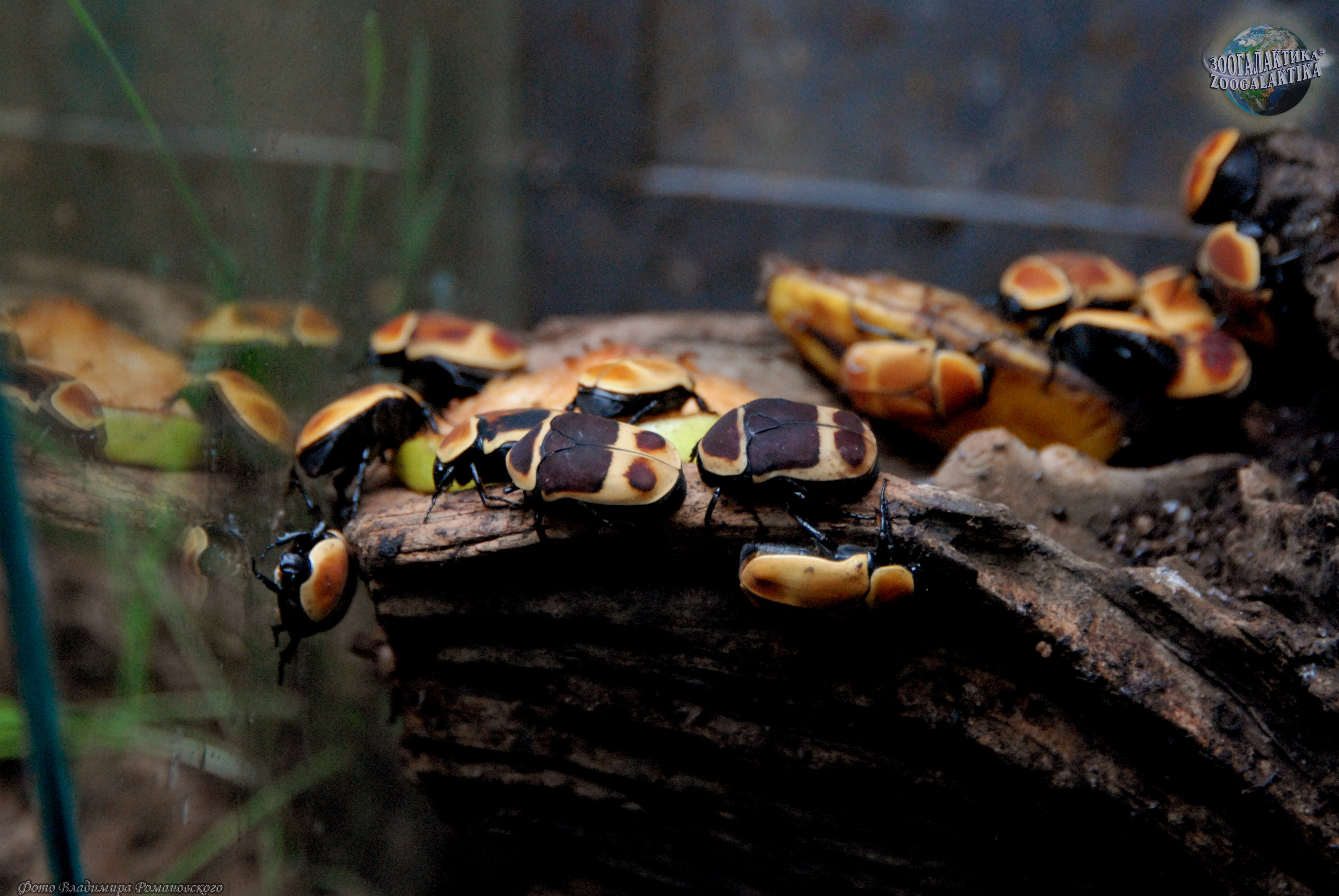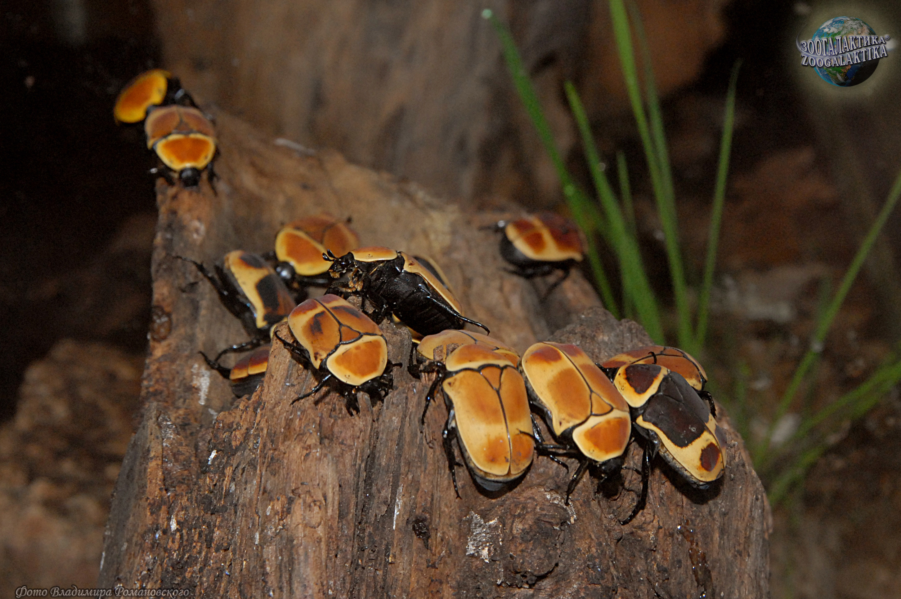 Бронзовки нередко поселяются в муравейниках и иногда им приходится спасаться бегством от муравьев, которые бывают не прочь ими полакомится. Часто их спасает дурнопахнущая жидкость, в минуту опасности выделяемая жуками из сочленений брюшка и надкрыльев. Выросшая личинка бронзовки сооружает из мелких частичек трухи, скрепляемых паутиной, сначала внешнюю оболочку кокона, а потом принимается строить внутреннюю, более прочную и совершенно гладкую изнутри (она состоит из выделений самой личинки). Затем личинка надолго замирает и окукливается только на пятнадцатые сутки после того, как окружала себя плотным двойным футляром. Большая оранжевая куколка африканской бронзовки развивается около двадцати четырех дней. Как это ни удивительно, бронзовки выходят на свет с ослепительно-белыми надкрыльями! Жук долго ворочается в коконе, освобождаясь от остатков куколки и складывая под панцирь выросшие крылья. Дело в том, что надкрылья бронзовок устроены по-другому, чем у остальных жуков - они никогда не разводятся в стороны, и даже в полете остаются сомкнутыми над брюшком. Гладкая, без единой зазубринки, внутренняя поверхность кокона служит для того, чтобы створки надкрыльев жука могли правильно сформироваться и окрепнуть.