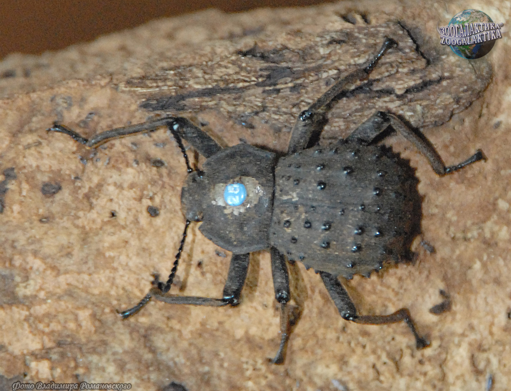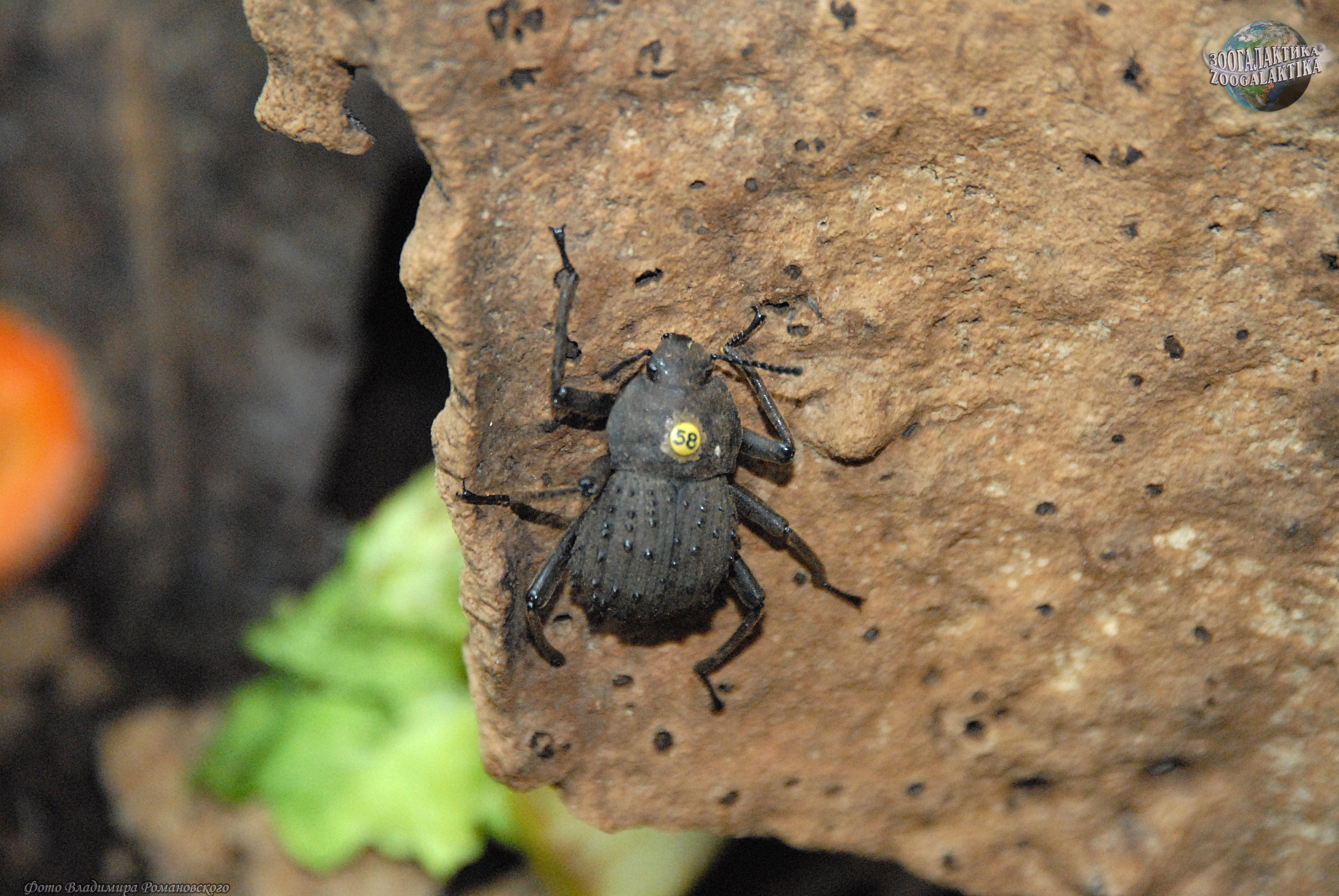 Жук-фрегат - редкий вид жуков, эндемик Сейшельских островов, внесен в Красную книгу Международного союза охраны природы (МСОП). Ареал этого жука ограничен лесистыми участками острова Фрегат. Жук-фрегат - довольно крупный нелетающий жук, он развивается в гнилой древесине индийского птерокарпа, причем взрослые жуки активны в ночное время суток. Катастрофическое сокращение численности этого вида в конце 1990-х годов произошло из-за интродукции на острове серой крысы, а затем еще более усилилось в связи с сильным заражением грибком его кормовых деревьев – индийского птерокарпа. Изучение и разведение чернотелки-фрегата в условиях европейских зоопарков началось в 1996г. Для облегчения исследований все жуки маркируются цветными дисками с номерами, приклеенными на их спинку.