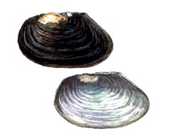 Раковина удлиненно-овальная, умеренно вздутая, тонкостенная, до 12 см длиной. Спинной край слабо выгнутый, немного наклонен вперед. Задний край в верхней части спрямлен, в средней резко закруглен. Брюшной край слабо выгнутый. Самая задняя точка раковины лежит против середины ее высоты или несколько ниже. Макушки не выступают над контуром створки, сдвинуты ближе к переднему краю раковины. Макушечная скульптура представлена валиками, вогнутыми или слабо вогнутыми на вентральном участке и резко изогнутыми по краям дорсально. Периостракум желто-коричневый. В задней части раковины от макушек к заднему краю идут два широких зеленых луча. Замок полностью отсутствует. Мускульные отпечатки крупные, неглубокие.