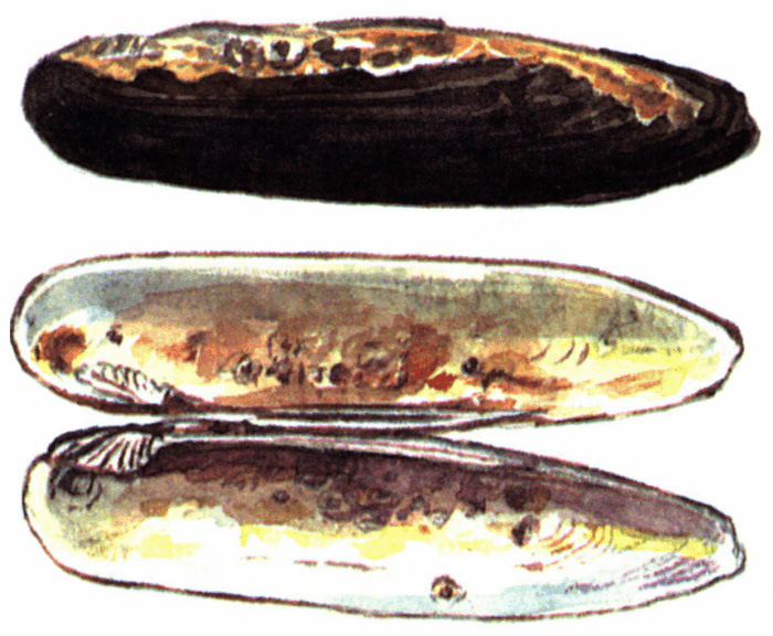 Раковина очень вытянутая, ножевидной формы, умеренно вздутая, толстостенная. Длина раковины может достигать более 12 см. Самая задняя точка раковины расположена почти против середины ее высоты или ниже, а наиболее выступающая точка боковой поверхности створки лежит примерно против середины высоты раковины. Макушки слабо выступают над контуром створки, сильно сдвинуты вперед. Макушечная скульптура очень хорошо развита и представлена дорсовентральными валиками под килевым перегибом, w-образными валиками у макушек и редкими складками спереди от макушек. Периостракум желто-коричневый или зеленовато-коричневый. Замок хорошо развит и состоит из толстых коротких передних зубов и длинных тонких задних. Передние мускульные отпечатки округлые, сравнительно глубокие, разделенные; задние вытянутые, неглубокие.