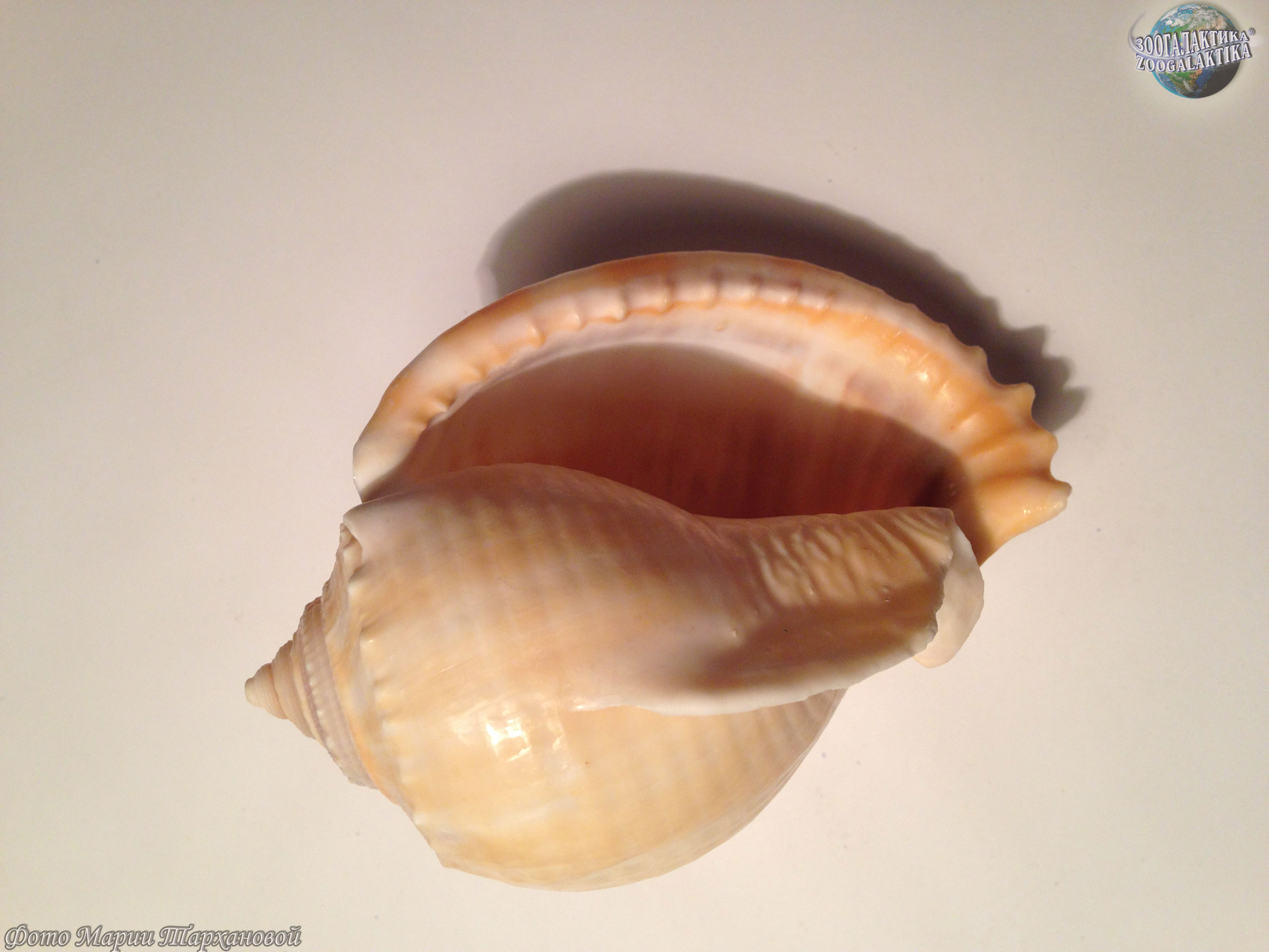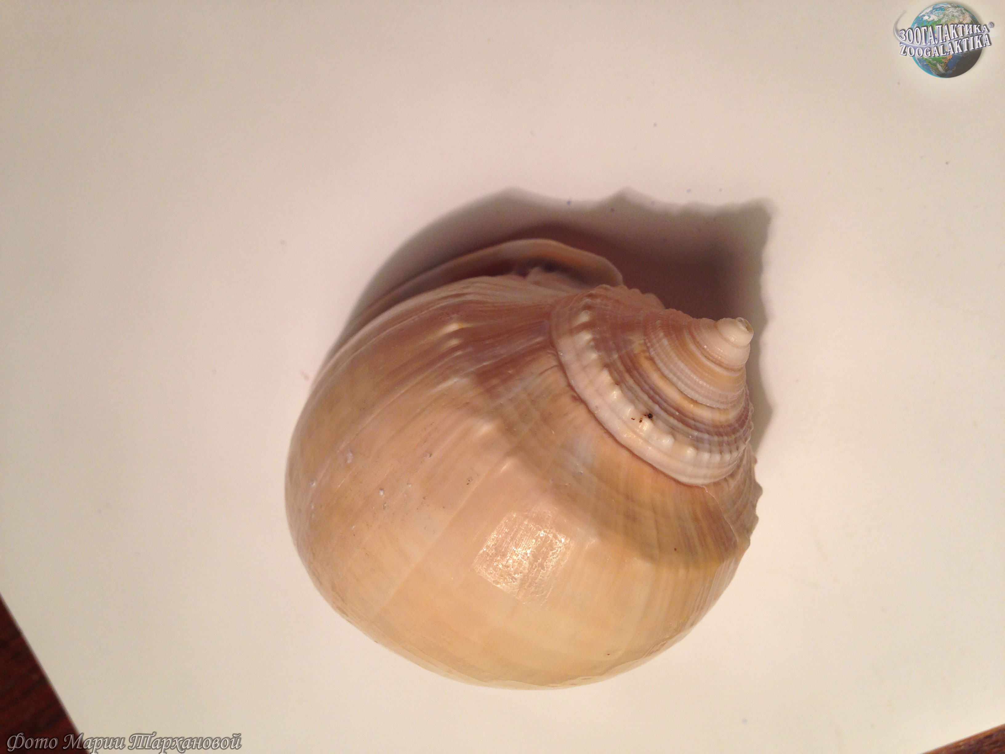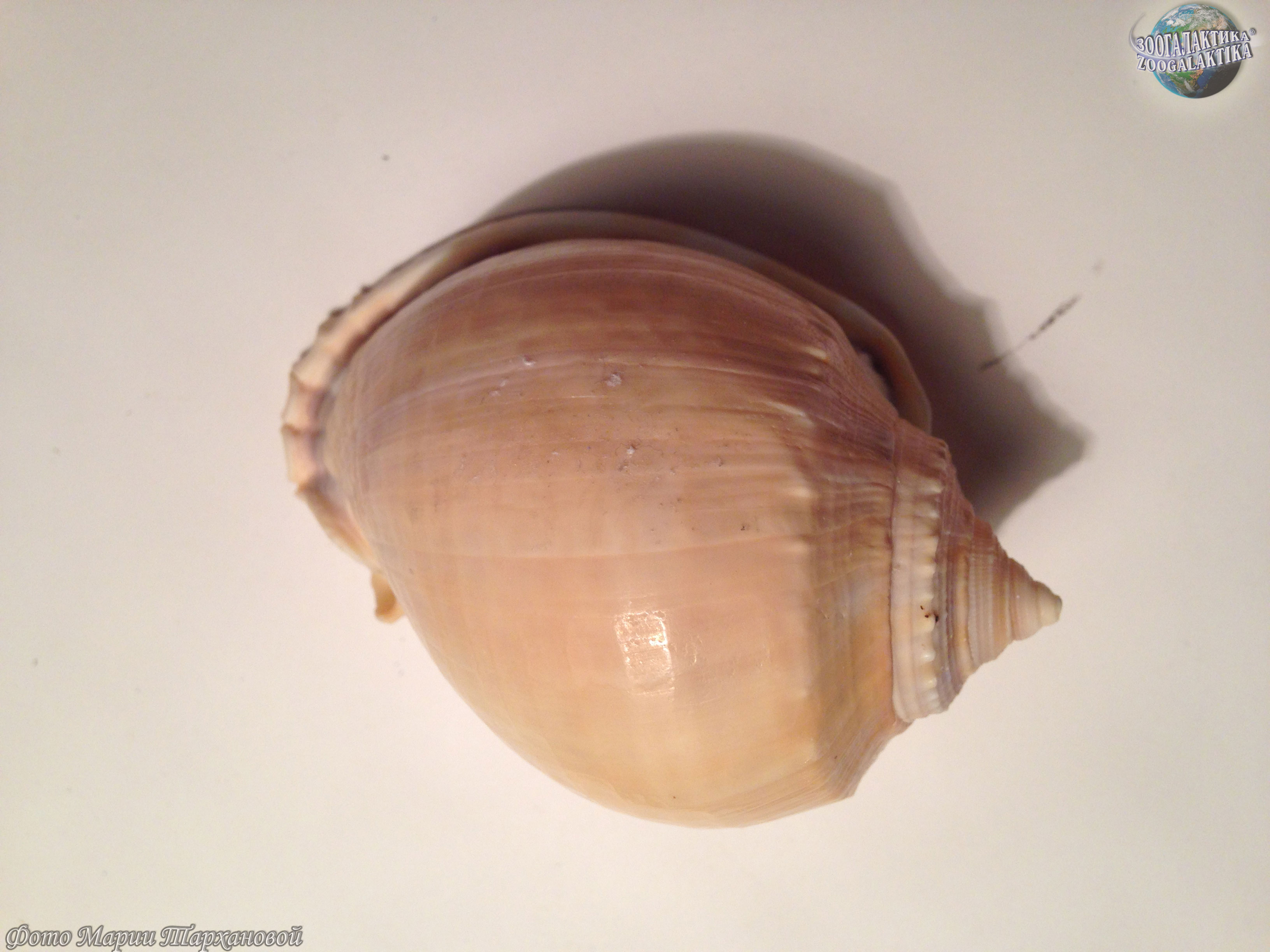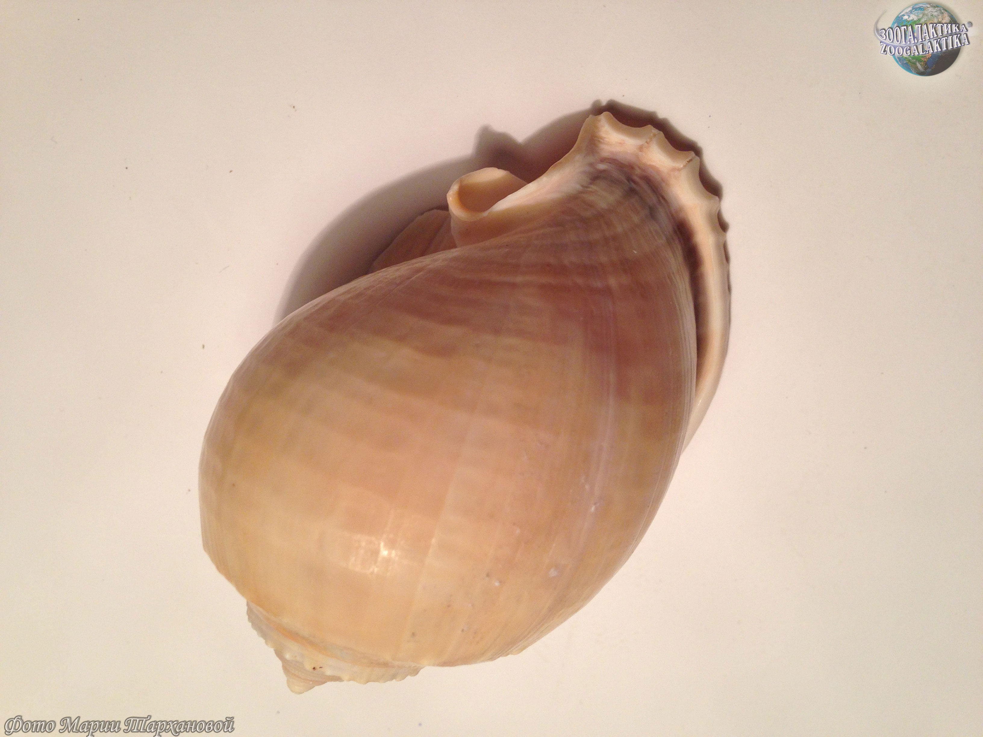 Раковина у сизого фалиума яйцевидная с маленьким завитком. Цвет раковины бледно-коричневый, поверхность гладкая, внешняя губа завернута. Длина тела раковины достигает 15 см.