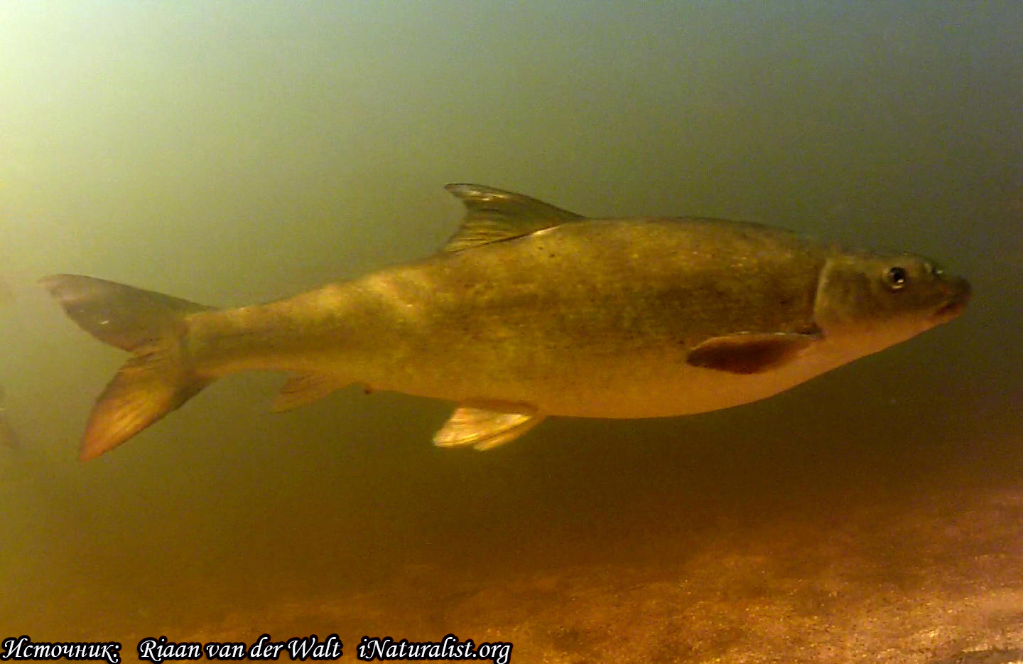 Песчаный лабео Labeo seeberi 15435 Песчаный лабео (Labeo seeberi) занесен в Красную книгу МСОП в статусе "вид на грани исчезновения"