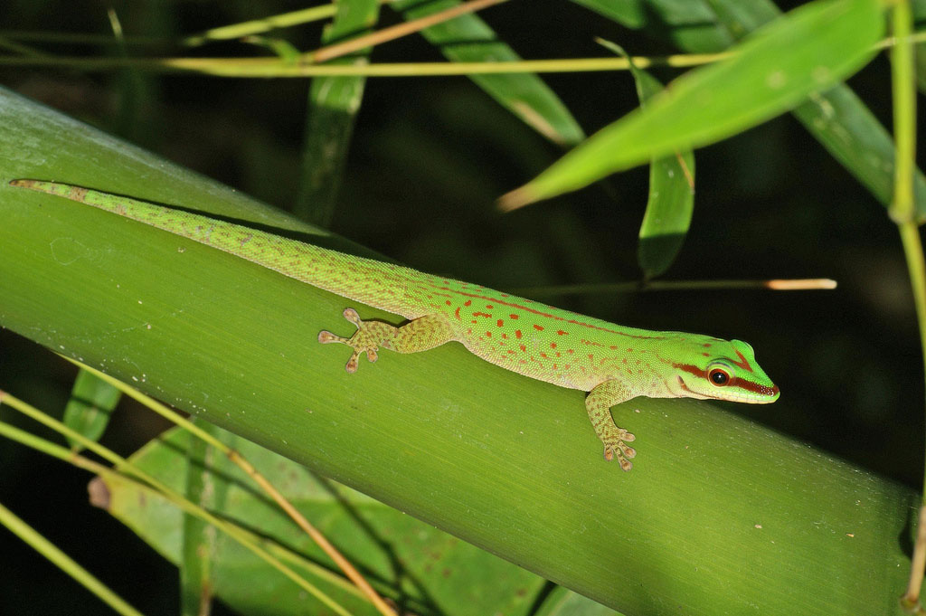 Дневной геккон Сейппа (Phelsuma seippi) занесен в Красную книгу МСОП в статусе "вымирающий вид"
